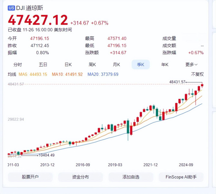 但道琼斯,一直在上涨。